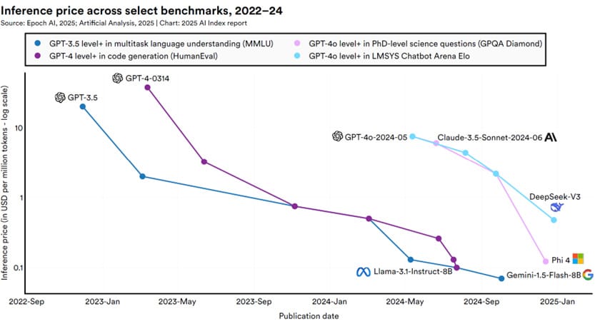 Here's what's true: per-token prices have collapsed. Roughly 280x drop in AI token costs over two years. That is a massive drop. Intelligence on a per-token basis genuinely got cheaper.