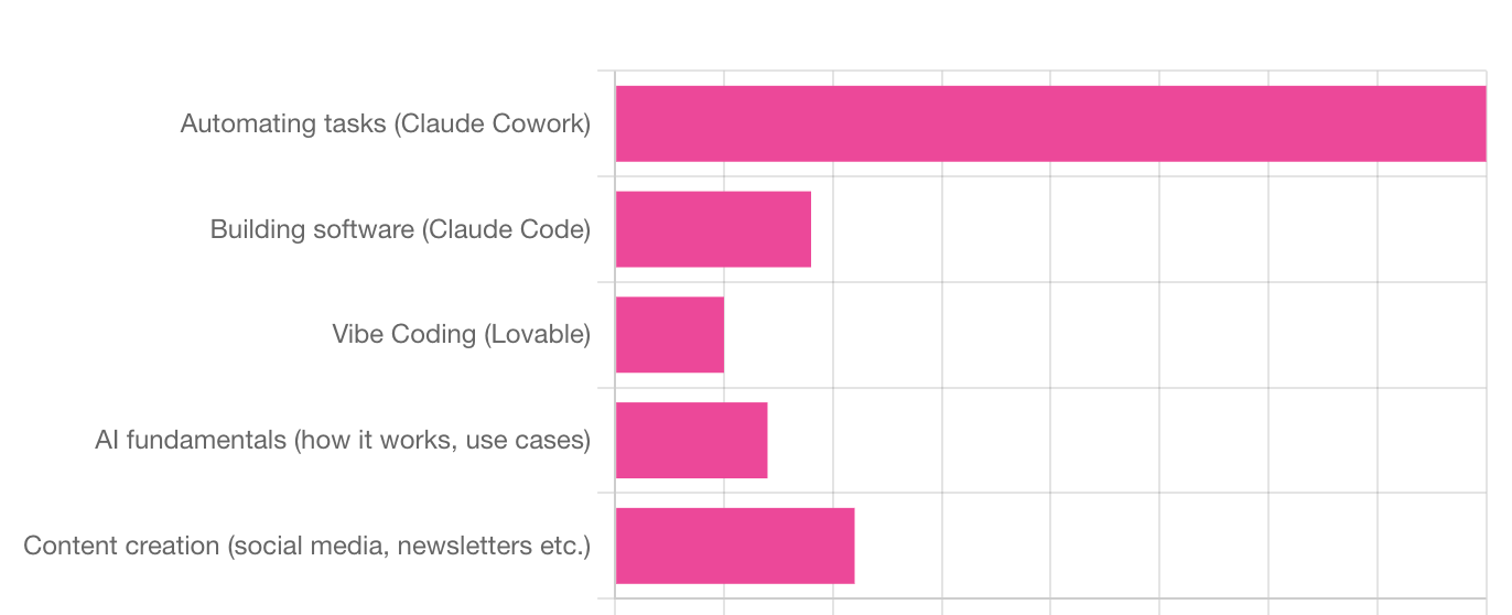 Claude Cowork, Claude Code and Content Creation…c,c,c,c,c,c…were the top answers.